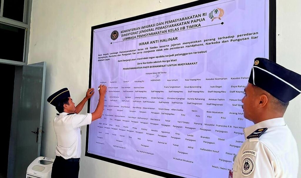Dalam sambutannya, Kepala Lapas Timika Hernowo menegaskan, ikrar ini bukan sekadar seremoni, melainkan komitmen yang harus dijalankan dalam tugas sehari-hari. Ia mengingatkan, keberadaan Halinar dapat merusak sistem pembinaan dan menurunkan kepercayaan publik terhadap institusi pemasyarakatan.