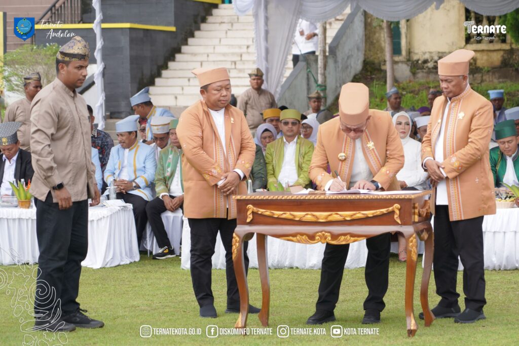 Upacara diakhiri dengan penandatanganan Peraturan Wali Kota (Perwali) sebagai petunjuk pelaksanaan Perda Nomor 2 Tahun 2025 tentang Hari Jadi Ternate. Penandatanganan ini menjadi payung hukum untuk menjaga kelestarian perayaan HAJAT di masa mendatang.